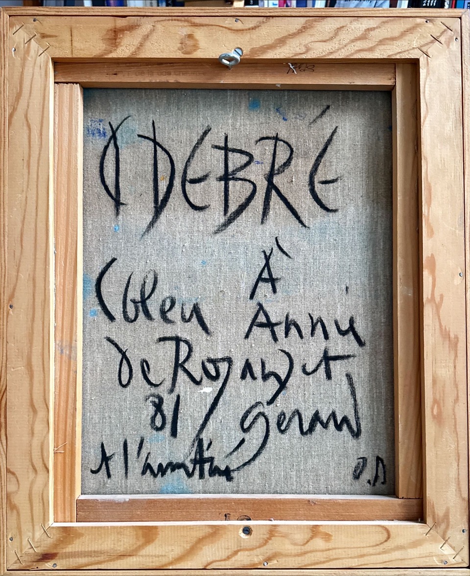 Œuvre signée, titrée/située et datée au revers : "O.Debré / Bleu / de Royan / 81" ; dédicace "à Annie et Gérard".