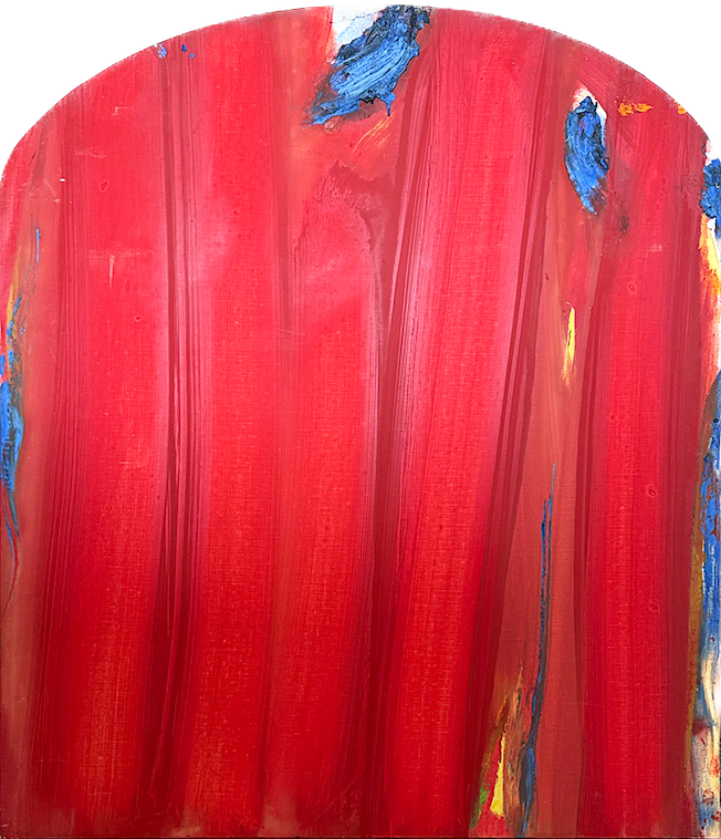 Œuvre titrée, datée et monogrammée au revers : "Rideau / de la / Comédie-Française / 86 / OD" ; dédicace "à Gérard et Annie".